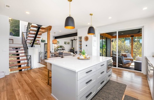 A kitchen that has it all - from gadgets & various graters to modern Fortessa cutlery, it's fit for those who like a variety of cooking gear. You will absolutely love cooking and being in this kitchen - it is the heart of the home and the view will make you say "wow" the first time you see it. It is such a cool kitchen!