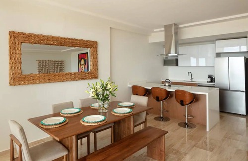 This is a centrally located apartment in the community of El Tezal, only 5 minutes away from downtown Cabo San Lucas, and 2 minutes away from Costco, Home Depot and Fresko, as well as various restaurants and bars. The complex has two large pools with ocean views, a BBQ, a gym and a private terrace with a large lounger and a fireplace. In addition to, 24/7 security, underground parking, and self check-in.