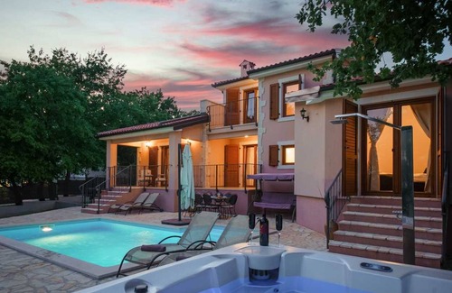 Luxurious villa with swimming pool and whirlpool near Zelena laguna is located in Fuskulin. Luxurious villa with swimming pool and whirlpool near Zelena laguna provides accommodation, featuring Bedding/Linens, Child Friendly, Kitchen, among other amenities. This Villa features Bedding/Linens, Child Friendly, Kitchen, to make your stay a comfortable one.