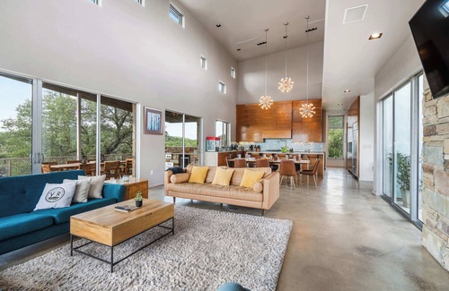 Wake up to sweeping vistas of the Texas Hill Country through walls of floor-to-ceiling windows, sip coffee in your private hot tub, and gather friends or family around the chef’s table as the sun sets over Reimers Ranch. This 3,600+ sq. ft 4-bedroom, 4-bath retreat spans two stories on 8+ acres of serene privacy, blending modern design, luxury finishes, and natural beauty for an unforgettable getaway just 30 minutes from Austin.