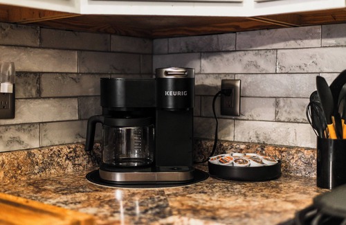 Tucked away in the lower level is a cozy mancave—your go-to spot for game night, sports marathons, or just kicking back in style. It features a smart TV, comfy lounge seating, and a card table with seating for four. Whether you're here to unwind or hang out with friends, this space adds an extra layer of fun and relaxation to your stay.