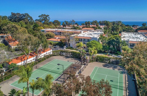 This lovely condo is just a stroll (1/2 block) from the beach. Onsite: pool, jacuzzi, fitness center, and tennis/pickleball courts; along with a dedicated dog relief area. Enjoy peace of mind with 24/7 gate security. Venture next door to the Santa Barbara Zoo, and nearby children's climbing areas, and an open field.Within a 4-block radius, find superb restaurants and e-bike rentals. A short mile away is Montecito, offering groceries and charming restaurants/cafes.