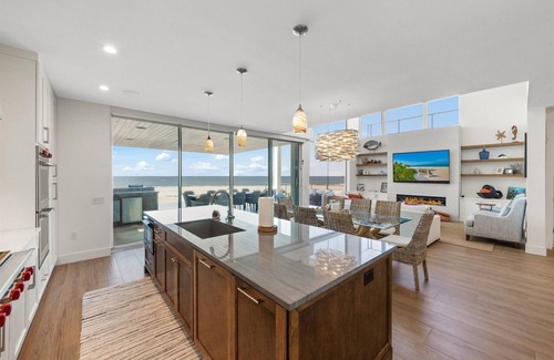 Sunnyside Escape is a newly built luxury home situated on the famous white sand gulf beaches of Anna Maria Island. The property is filled with top-of-the-line appliances and finishes throughout the home. Take in the view while lounging in the main living room, cooking, or enjoying a meal in the dining room. Large floor-to-ceiling windows allow spectacular views throughout the home.