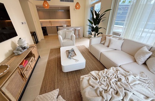Experience the perfect blend of work, relaxation, and comfort in our thoughtfully designed apartment, equipped with everything you need for a seamless stay. Step onto the expansive terrace, where cozy seating and an outdoor dining table invite you to unwind or enjoy meals with a breathtaking view. Inside, you will find a fully equipped home office that makes remote work effortless, while super-fast WiFi keeps you connected. Enjoy morning walks or afternoons relaxing by the beach and mangroves, just a 50m walk to the sandy shores. Enjoy kayaking, paddle boarding, and electric boat hire along the waterfront for chilled afternoons with the family, making the most of the UAE's weather and outdoor living. We offer hassle-free, contact-free check-in and 24/7 virtual support, ensuring a smooth arrival. Refresh in the outdoor swimming pool, stay active in the fitness center with a running track, or soak up the sun on the poolside decks. The apartment comes pre-cleaned with fresh towels and linens, air conditioning, and a fully equipped kitchen. Free private parking completes the experience. Conveniently located by the beach yet only a 5-minute drive to Reem and Galleria Mall for essential shopping, with the Louvre and Saadiyat Island just 10 minutes away. Yas Island and theme parks are 25 minutes by taxi.
