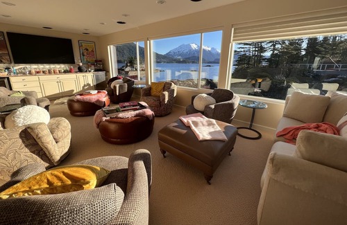 Enjoy your vacation in Sitka alaska like no other. Wake up on a private island to the smell of coffee and breakfast being prepared. All your meals are included and you can relax on many of the decks or enjoy a sauna or hot tub or jump in a kayak or try out a paddleboard and listen to the ocean waves right outside your bedroom window. The town of Sitka is five minute boat right away and you can enjoy the shopping or hiking or some of the wonderful culture that Sitka has to offer. You can add a fishing trip or add a whale watching trip or at a wine cruise it’s a vacation your way. Two night min stay. Included: airport transpiration, Private room with bathroom, all meals and use of Island amenities.