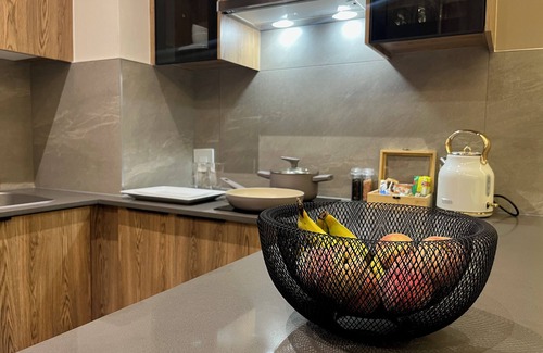 Relax on our designer couches inspired by contemporary aesthetics, surrounded by KAWS-inspired art that adds a creative edge to your stay. The apartment seamlessly blends style with functionality, offering a dedicated work station for productivity, full air conditioning for year-round comfort, and a dining table perfect for meals or working sessions.