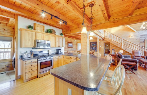 Leave your busy schedule behind for a stay at this hilltop vacation rental! This 4-bedroom, 4.5-bathroom log cabin sits just outside of Waynesville, making it perfect for group trips and those looking to get away for a while. Spend your days skiing at the Cataloochee Ski Area, hiking nearby nature trails, and exploring the downtown shops, galleries, and dining. Tucked away between the Blue Ridge Mountains and the Great Smoky Mountains, this charming property is truly a hidden gem!