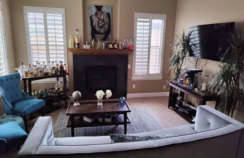 House has it all: large heated pool with tons of games and floats, hot tub, grill, outdoor tv and lounge area, you won't want to leave. Also enjoy easy access to major highways, sports stadiums and downtown Phoenix. 5 bedrooms and 5 baths mini mansion with full stocked bar available.