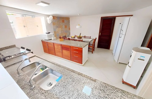 Located in Guarujá, this welcoming vacation home lets you experience it all. Thanks to the convenient onsite parking, you can either leave your vehicle behind and enjoy a short 5-minute walk to Enseada Beach, or easily tackle the quick 8-minute drive to Mar Casado Beach.