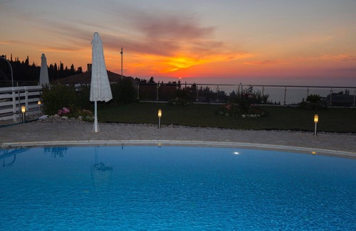 The private outdoor area of Villa Angela offers a lush green garden with colorful flowers, trees with seasonal fruit, and a stone built BBQ. You will love the afternoons enjoying the magical sunsets while cooling down with the soft touch of the mountain breeze, making memories that will stay forever in your heart.The final touch is the blue water of the large swimming pool that becomes one with the horizon and the endless blue of the Ionian Sea.Villa Angela is an ideal choice for you and your family that promises a comfortable and unforgettable stay on Lefkada Island.
