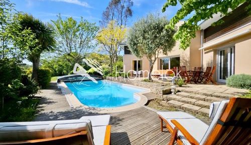 Offering a garden, Luxury! Villa avec piscine - Vue 180 sur le golf features accommodations in Gestel. This property offers a private pool, free Wifi, and free private parking. On clear days, guests can head outside to enjoy the vacation home's outdoor fireplace. Featuring a terrace, this vacation home also includes a TV, a well-equipped kitchen with a dishwasher, an oven, and a microwave, as well as 4 bathrooms with a bath and a hair dryer. The accommodation has a fireplace. Lorient Train Station is 6.1 miles from the vacation home, while Football Club Lorient is 6.1 miles from the property. Lorient South Brittany Airport is 3.7 miles away.