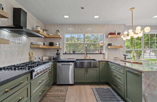 • Chef’s Kitchen: Fully equipped with high-end appliances, custom cabinetry, a waterfall island, and stylish open shelving – ideal for cooking up gourmet meals.