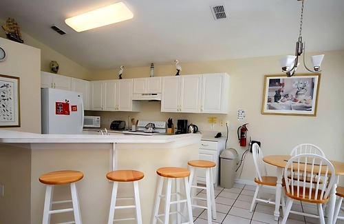 The perfect choice for your next family getaway, this holiday pool home offers a private screened-in pool and spa, a fully equipped kitchen, free high-speed internet, free wireless calls to the USA, full-size washer/dryer, microwave, and cable television.