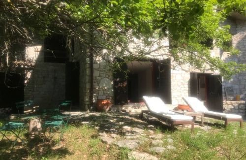 The House is a luxury stone villa built upon an ancient stable, set in a forest, in the heart of the Monti Lucretili Regional Park, where you can only hear wind through the oak and elm trees, water flowing in the nearby creek, and you can only meet hares and boars and the odd roe deer; but you are just 15 minutes drive from the cozy medieval towns of Scandriglia and Orvinio and 1 hour 15 from Rome.