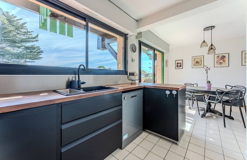 The house is ideally located for exploring the region: cycling paths and coastal trails are accessible directly from the property, and Arcachon train station is only 10 minutes away, offering quick access to Bordeaux.