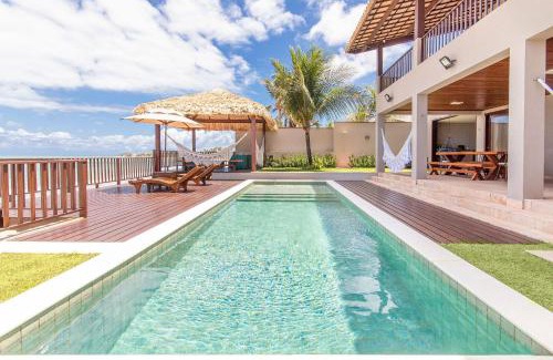 Providing a garden, Mansão Varandas - Luxo à Beira Mar por Carpediem offers accommodations in Jacumã. This beachfront property offers access to a terrace and free Wifi. The vacation home provides parking on-site, an outdoor swimming pool, and a shared lounge. This air-conditioned 6-bedroom vacation home comes with a seating area, a TV, and a fully equipped kitchen with an oven. Towels and bed linen are provided in the vacation home. The property offers sea views. Porto Mirim Beach is a few steps from the vacation home, while Genipabu Lagoon is 14 miles away. São Gonçalo do Amarante International Airport is 23 miles from the property.