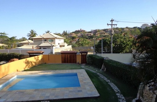 Beautiful mansion on 1.300m2 land, greenful garden, coconut trees, 50m from Geribá and 80m from Ferradurinha, coated with Brenand tile. Steam sauna, jacuzzi for couple, 29' size TV, DVD, stereo, air conditioning and ceiling fans. Covered Bar and barbeque grill with special stove for pizza cooking. Lighted pool, and deck. Terraces, rooms with 3 environments, guest bathroom, completely equiped american style kitchen. Located on plain land. Total privacy. Access to Búzios center , 2m distance by alternative road free from traffic.