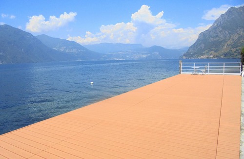 The location is located in a small residential complex just built, directly on the lake and in an absolutely privileged position, and has a large solarium use pier, with the necessary equipment for beach usability. The inhabited center with services (food, pharmacy, tobacconist, post office, railway station and bus line) is no more than 500 meters away, and can also be easily reached by means of the cycle path that runs along the entire lake coast.