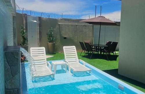 Food & DrinkTea/Coffee maker, Bottle of waterBathroomBathtub or shower, Private bathroom, Toilet paper, Shower, Guest bathroomMedia & TechnologyFlat-screen TV, Cable channels, Radio, TVGeneralAir conditioning, Iron, Private entrance, Fan, Trash cansOutdoorsBarbecue, Private pool, Balcony, Outdoor dining area, Outdoor furnitureKitchenWine glasses, Oven, Kitchenware, Refrigerator, Dining table, Microwave, Stovetop, Kitchen, Cleaning products, High chairLiving AreaSitting area, Sofa, Dining areaViewPool viewBedroomLinensAccessibilityEntire unit located on ground floorBuilding CharacteristicsDetachedRoom AmenitiesNon-feather pillow, Drying rack for clothing, Clothes rack, Sofa bed, Socket near the bedPool and SpaShallow end |