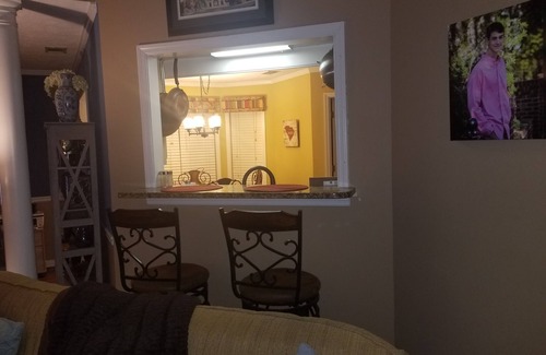 Beautiful home at the end of cul-de-sac. 15 minutes from Augusta National. 5 minutes from local golf course. In quiet neighborhood with plenty of parking. Close to shopping, restaurants, grocery stores. Home has 3 bedrooms and 2 1/2 baths. Freshly painted this past year. Kitchen is fully equipped with anything you may need. Washer and dryer available and cleaning service will be provided daily by the owner. Driveway and cul-de-sac has plenty of parking. Family home with fenced in backyard and screen porch with gas grill. Grill will be accessible and a fully furnished porch to sit back and relax after a long day at the course.