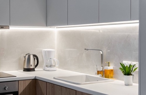 Upon entering, you are greeted by a spacious and elegantly furnished living room, featuring a queen-size sofa bed. This cozy space invites you to relax and unwind after a day of exploration, offering a perfect spot to enjoy a movie or engage in conversation. Adjacent to the living room is a fully equipped kitchen, designed with both functionality and style in mind. Here, you can prepare delicious meals using fresh local ingredients, or simply enjoy a leisurely breakfast before heading out to discover the city's many attractions.