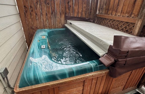 Unwind at this unique 2 story multi-unit house. Enjoy over 1800 sq ft on your side. This unique converted garage on the main floor. All new recliner furniture this year. Still enjoy the mini game area darts, foodball, and arcade. Kitchen has granite counters and cupboards are stocked with necessary dry goods. And the kitchen has all the needed pots pans and gadgets to make an Alaskan meal. 2nd floor enjoys great street and sunrise view from the upstairs windows with 140 degree windows. Master bedroom including a California king bed with custom en-suite shower made from Alaskan slate from Hope, AK.. Custom cascade shower. Featured bench as well as shower chair if needed. All bathroom necessities provided. Master bedroom opens out to your private balcony with hot tub. All year! The Jr. Master en-suite has now a new full size bed. Above is a comfy private loft and can accommodate more sleeping. 4 TV’s with all the entertainment apps provided in every room for your convenience andperaonal wind down time. Also has as TV antenna for up to the minute local news and fishing and hunting reports. This unique hideaway has parking private yard from alley access. The shared private parking yard is Large enough area can accommodate up to two more vehicles. You will find all the simple comforts of home. Full size washer and dryer, hairdryer, curling iron, laundry soap, iron, iron board, games cards, books for kids, small toy area. Of course a small dedicated workstation upstairs with desk. Charging station and desk lamp. WiFi. Utiize the comfy full/twin bunk bed downstairs when accommodating a larger group. There is a small toilet closet downstairs for convenience.