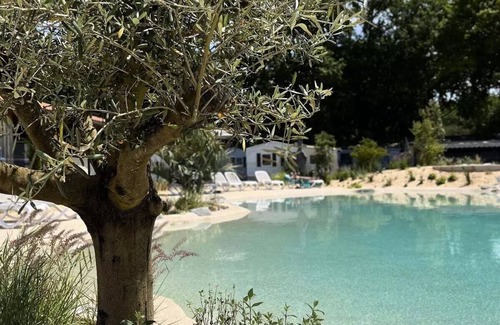 Mobilheim A/C is located in Vensac. Mobilheim A/C provides accommodation, featuring Kitchen, Air Conditioner, Pool, among other amenities. This House features Kitchen, Air Conditioner, Pool, to make your stay a comfortable one.