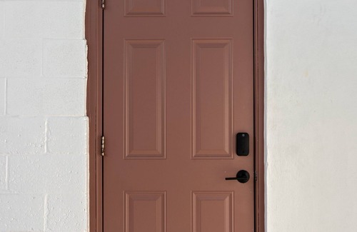 Enter through a combination locked gate into the private patio, lit by solar string lights at night. From there, you'll have easy and secure access to your house through a Yale Smart Lock on the front door.
