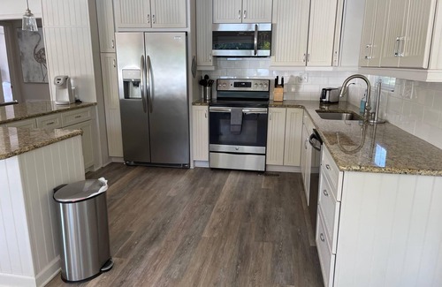 This single-story family-style home boasts 2 Bedrooms (1 King & 1 Queen). Just under the windows in the Grand Room is a high-end, Italian Natuzzi leather Queen-sized Sleeper Sofa (very comfortable – we have all slept in it several times). The huge open-concept living room, kitchen dining room, breakfast room, and wet bar is ideal for gathering - more seating than you could ever need making the living space never feel small. All making this a wonderful, one-of-a-kind, romantic, get-away vacation home for a quiet couple’s retreat or a fun activity-seeking family.