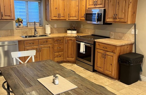 Stunning basement apartment. The open space has everything you will need including an Air Hockey Table! Beautiful full kitchen, 2 bedrooms and 1 bathroom, laundry and a huge, beautiful family room. Whether you are gathering as a family, visiting the area or escaping for time away - this is the space for you! 25 min to Sundance – Ski, hike, and explore the mountains. Pickleball and Tennis in the backyard as well as a beautiful park with a play area and covered picnic area.