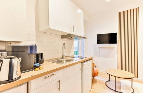Modern deluxe studio in the heart of Paris is located in Quartier du Faubourg-Montmartre. Modern deluxe studio in the heart of Paris provides accommodation, featuring Security/Safety, Bedding/Linens, Wellness Facilities, among other amenities. This Apartment features Security/Safety, Bedding/Linens, Wellness Facilities, to make your stay a comfortable one.