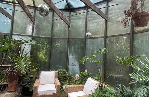 Or just stay hidden away on the property with plenty to keep you occupied, including a secluded pool, hot tub, Japanese-inspired garden, greenhouse lounge, fire pit, and many outdoor seating areas tucked away in the lush greenery.