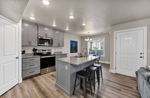 Welcome to your Bear Lake getaway! This inviting townhome is designed with comfort and connection in mind. Gather around in the bright, open living room where natural light pours in through large windows, creating an airy and welcoming atmosphere. Sink into the oversized sofa for movie nights on the smart TV, or simply relax and enjoy the mountain views after a day of exploring.
