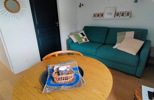 - Un séjour salon (12 m²) avec canapé convertible (en 140 X 190 cm), télévision, wifi, table et chaises de salle à manger.