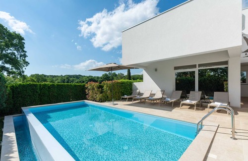 Modern Villa with Heated Indoor and Outdoor Pool for up to 8 Guests is located in Municipality of Zminj. Modern Villa with Heated Indoor and Outdoor Pool for up to 8 Guests provides accommodation, featuring Entertainment, Internet, Kitchen, among other amenities. This Villa features Entertainment, Internet, Kitchen, to make your stay a comfortable one.