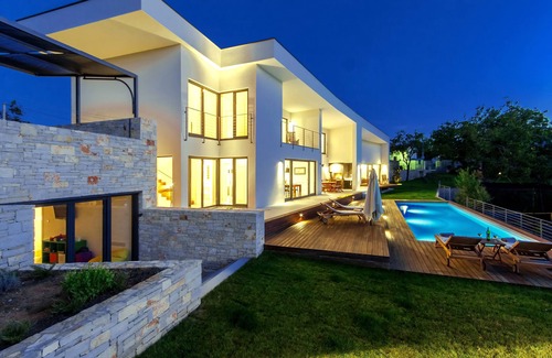 Modern villa with heated pool, whirlpool, volleyball court and mini football | Villa in Svetvincenat, Croatia