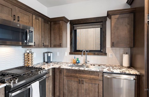 2 Bedroom/2 Bathroom Penthouse with private hot tub NEW EXECUTIVE PENTHOUSE Sleeps 4-5 This is a brand new unit in a new building. Top floor new construction in the heart of downtown Whitefish, Montana. Breathtaking views of vibrant downtown, Central Avenue and Big Mountain can be enjoyed from the wall of windows in the living room or from the spacious balcony overlooking the wonderful town. This is a fantastic location, just steps away from: parks, trails, hiking, kayaking, golfing, skiing, fishing, shopping, breweries, restaurants, and nightlife, along with being a short drive to Whitefish Mountain Ski Area and Glacier National Park. Easy access from the covered, off street parking, leads you into the building where guests can easily take their bags up to the penthouse units with the new elevator. The outdoor patio is perfect for entertaining friends, watching downtown, sitting around the fire pit, or hoping in the large hot tub.317 Loft Unit 302 features a king bedroom suite with walk-in shower, dual sinks, built in closets with overhead storage, and TV with cable and internet service. This suite also offers a private door to the balcony. The second bedroom in Loft 302 offers a offers a bunkbed with a full and oversized twin, TV with cable and internet. The bathroom can be closed off to act as a second master should a guest so choose. The bathroom offers a walk-in shower with closet featuring overhead storage. Luxe Loft Amenities: Full kitchen with free Keurig coffee so you don't have to leave your comfy room to enjoy the views from the deck over coffee, wine and champagne for our over 21 guests for a small fee so you can have a drink after shopping, skiing, or dinner without having to go shopping, washer and dryer, TV (x3), cable, internet, and outdoor seating with fire pit, ground level ski and bike storage space with a dedicated oversized covered parking space. The snow bus stops a block away so you don't even have to drive to the mountain, pay for parking, or worry about driving back after cocktail hour with your friends. Uber and Lyft are available as well. Downtown Whitefish offers a very vibrant and unique atmosphere. There are high end shops along with quaint gift stores. Art Galleries, bakeries, coffee shops and more adorn every block. There are numerous festivals right out your front door, including Winter Carnival, Oktoberfest, Farmers Markets, Ski Joring, Festival of the Arts, Whitefish Trick or Treating, Brewery Tours, Glacier Symphony, and many more. Check the website to find what events you will have the opportunity to enjoy. Guests can experience health and wellness while visiting Whitefish, including multiple yoga, cycle and fitness studios within blocks, or explore the outdoors with hiking, skiing, ice skating, kayaking, paddle boarding, fishing, swimming and more within minutes of your front door. Outdoor recreation has the best of both winter and summer worlds, with the world renown Whitefish Ski area and the incredible glass water of Whitefish lake, both within minutes of Luxe Lofts. Come enjoy the best of Whitefish, and stay in a comfortable, elegant, convenient penthouse that will be the envy of your friends. Don't forget to share the pictures of your experience at Luxe Lofts Penthouse and our hometown of Whitefish.