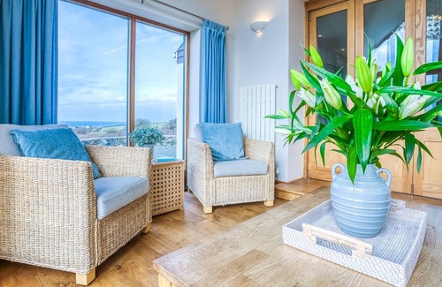 Find a large, sociable, open plan kitchen and dining space (you can stock up with all sorts of delights on the way at Valley). Through to the vast living areas there's plenty of comfortable furniture, piles of books, a swanky TV, a wood stove and the most breathtaking views down to the bay. The vaulted sitting room area with vast glass and light is a hub of delight with panoramic views of the sun sets! A small study space caters for those that need to catch up with study or work… Children will adore this place too as there are games for dedicated fun. In the summer the large doors swing open to create a light filled heavenly place and as if that is not enough, head for the veranda - a hot spot for sunsets with a cool sparkly glass of something special.