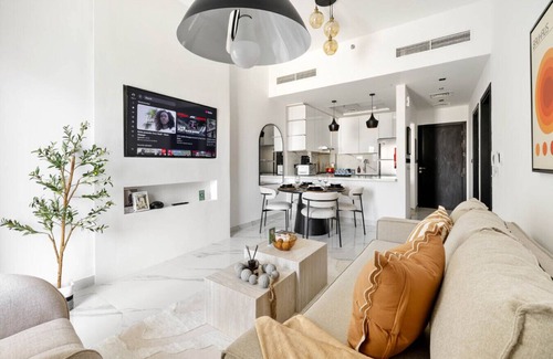 This stylish one-bedroom apartment in Gardenia Livings has everything you need. The living room has a sofa bed, and there's a fully equipped kitchen. Building perks include an infinity pool, a rooftop terrace, sauna and gym. It is located in Arjan, just 1.1 km from Dubai Miracle Garden. And it comfortably fits up to 4 guests. It is ideal for families and travellers seeking comfort with modern amenities in a convenient location.