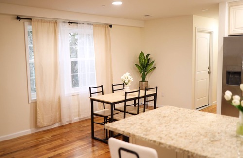 Immerse yourself in a home away from home experience with our brand new welcoming, and stylish 3-bedroom apartment available for a comfortable stay in one of our 2 unit house. This well-appointed space features modern furnishings, a fully equipped kitchen, and a cozy living area. With amenities like high-speed Wi-Fi, smart TV, and large backyard. Conveniently located near local attractions and Newark International airport!