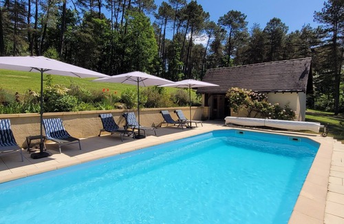 NEW TO MARKET Maison du Morilhou is a very spacious house with 4 bedrooms and 4 bathrooms.It is located a 10 minute drive from the pretty town of Montignac-Lascaux just outside a pretty village.It sits is 2 hectares (21k sqm) of parkland and is extremely private with no immediate neighbours providing the ideal surroundings for a peaceful holiday. There is a private swimming pool with terrace, sun beds and parasols and a covered dining area with built in BBQ.There is also a large games area upstairs in the house on a mezzanine with a pool table and TV with Playstation. 2025 was our first season. There are numerous towns and villages to visit together with over 1000 chateaux and other tourist attractions. The area is famous for it's local gastronomy which includes duck, foie gras and walnuts. There are several very good restaurants in the locality including a Michelin star restaurant just a 30 minute drive away - Le Petit Leon in St Leon Sur Vezere. There are 4 bedrooms, 2 upstairs which both have ensuite shower rooms and 2 downstairs which share a large bathroom with large shower and bath tub. All the bedrooms have 6ft (180cm) beds, 3 of which split into 2 single beds.