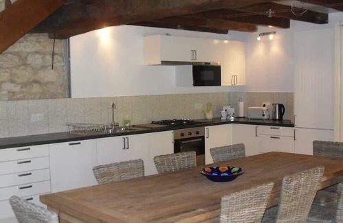 A 200 year-old detached Charentaise villa, lots of character, stone walls, beams and original stone fireplace. Modern kitchen & bathrooms. The large, mature, secluded, south-facing garden, is not overlooked and has sun-loungers, table and 2 BBQ's. Lots of space to play. The 10m x 4m private pool has roman steps for easy access and is heated from the end of May, the pool is exclusive and no sharing with anyone else. The pool area has a summer kitchen/utility room (with fridge), shower & WC. The games room has a pool/snooker table & table football. The swimming pool, table tennis, books, boardgames, 300MB full fibre WiFi, UKTVwill keep everyone occupied. The open plan kitchen/diner is fully equipped & has a large teak table & terracotta tiles. The lounge and all the bedrooms have fly screens. Relax with books & games on the mezzanine. A spacious house and large garden offers plenty of things to do, so no need to go out everyday, and there is no feeling of living on top of one another.
