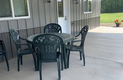 Our cozy home is all one level with a front porch and back patio. It offers a large open area floor plan kitchen, living room and dining area. There are two spacious bedrooms and one large bathroom. Woodland surrounds the property with abundant wildlife.