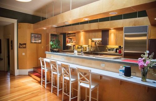 This is a relatively new and narrow listing. I am offering my 2400 Sq. Ft. second floor historical loft. $20,000 in recent exquisite furnishings. Master bedroom with king size bed. Second bedroom with queen size wall bed. Well appointed gourmet kitchen. On-street parking and entrance. There is also a designated off-street parking space available.