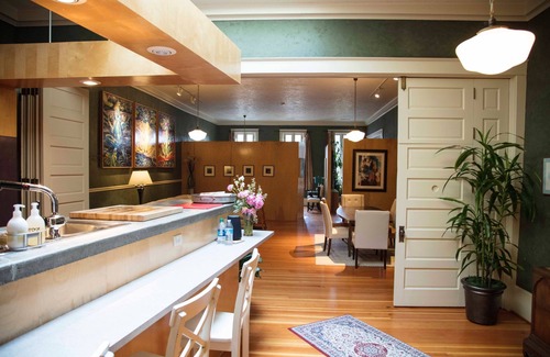 We cater to tourists and traveling professionals who value experiencing historic properties in urban settings. Feel free to tour our Oregon State Capitol, historic state archives, historic downtown Salem shopping district, and theaters, gardens, and museums. We also cater to visiting parents and family members of students and others attending or affiliated with Willamette University or Law School, legislators, Salem Convention Center attendees, and those coming to enjoy our MId-Willamette wine country. My historic loft is located on Commercial St between Chemeketa and Court St in the heart of historic downtown Salem. This is a quiet, clean, approximately 2400 sq. ft. three bedroom loft. Whether it is one to four guests, the entire loft is your private space. There is a well appointed gourmet kitchen and dining room. Enjoy the media room with 40 inch LCD TV and high speed WiFi internet with download speeds of 50 Mbs and 10 Mbs upload.