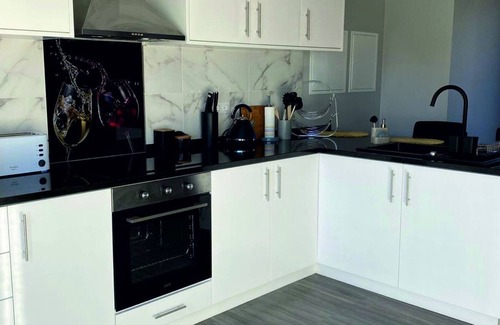 The kitchen is well equipped, with a hob, fridge, oven, microwave, coffee machine and more. There is high-speed Wi-Fi and the living room has a huge flat screen TV with cable channels.