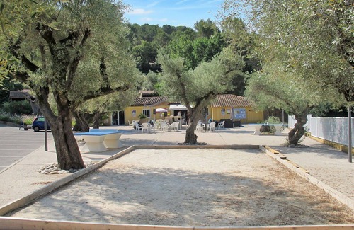 The resort is conveniently located 800 meters from the center of Solliès-Toucas and 3 kilometers from the Solliès Pont railway station. It is situated 13 kilometers from the center of Toulon, 24 kilometers from the center of Hyeres, and 18 kilometers from the sandy beach "Baie de la Garonne." Nearby attractions include the countryside surroundings and the picturesque setting on a slope, offering scenic views.
