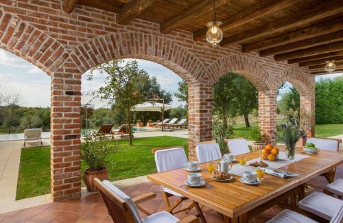 The dreamlike Villa Hacienda is located in the small Istrian village of Filipini. The villa's location offers absolute privacy and an opportunity to escape the bustle of everyday life. It is an ideal choice for all those wishing to explore the unspoilt Istrian nature since the villa is immersed in beautiful greenery, surrounded by lush trees and vineyards. The villa is located only six kilometres from Poreč, rich with historical and cultural heritage, numerous restaurants and bars and crystal-clear beaches. Villa Hacienda is the perfect choice for all those who wish to explore the beautiful Istrian cities and still enjoy a week of privacy and absolute calmness.