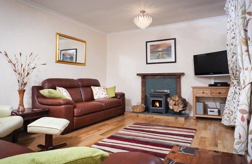 Amenities: Note: the property has had the recent issues resolved. Oil central heating with woodburning stove. Electric oven and hob, microwave, fridge/freezer, washing machine, tumble dryer, TV, CD player, WiFi. Fuel and power inc. in rent. Bed linen and towels inc. in rent. Cot and highchair available. Garden with patio and balcony with furniture. Off road parking for 1 car. Two well-behaved dogs welcome. Sorry, no smoking. Pub 4 mins walk. Shop 1.4 miles.