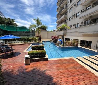 A 17-minute walk from Maracanã Stadium in Rio de Janeiro, O mais queridinho Rio de Janeiro features accommodations with access to a hot tub, spa facilities, and fitness room. This property offers access to a balcony, a pool table, free private parking, and free Wifi. The apartment offers an outdoor swimming pool, sauna, and an elevator. Accommodation for disabled guests is also available at the property. Offering a terrace and lake views, the spacious apartment includes 2 bedrooms, a living room, satellite flat-screen TV, an equipped kitchen, and 2 bathrooms with a walk-in shower and a hot tub. Towels and bed linen are offered in the apartment. The accommodation is non-smoking. Guests may wind down at the bar or lounge, while a mini-market is also available. For guests with children, the apartment provides kids pool, an indoor play area, and outdoor play equipment. A baby safety gate is also available at O mais queridinho Rio de Janeiro, while guests can also relax in the garden. Selarón Steps is 3.7 miles from the accommodation, while AquaRio Rio Marine Aquarium is 3.7 miles from the property. Santos Dumont Airport is 5 miles away.